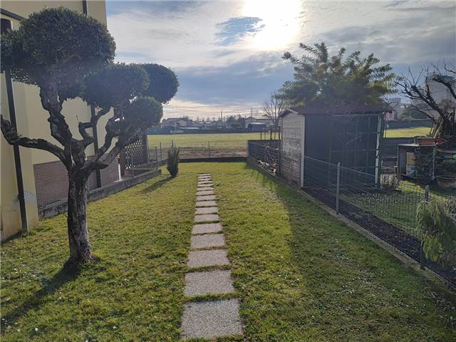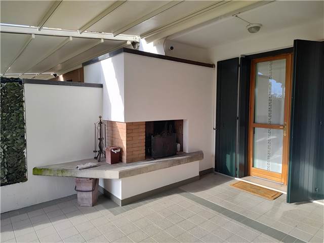 Ingresso su soggiorno, cucina separata abitabile, portico che da sul giardino con caminetto, completa il piano terra un grande bagno con vasca; zona notte al primo piano composta da due camere matrimoniali ed una singola, bagno con doccia, due comode logge.
